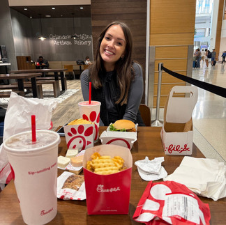 We were a little ambitious and showed up to the airport a little to early so we wandered around and got “The Last Supper” (our last Chick-fil-A for 2 months). We found our flight on the board and headed to the gate!