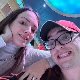 We had dinner at Royal Court on night two and may have forgotten to take a picture of the food but here is a selfie of us at dinner. I got pasta and Taylor got a salad! I love being able to get as many appetizers, entrees, and desserts as I want, especially since you don't have to pay! We decided to go to the game shows tonight which were Majority Minds and Match Your Mate. Taylor says her favorite part of the entire cruise is always the game shows.